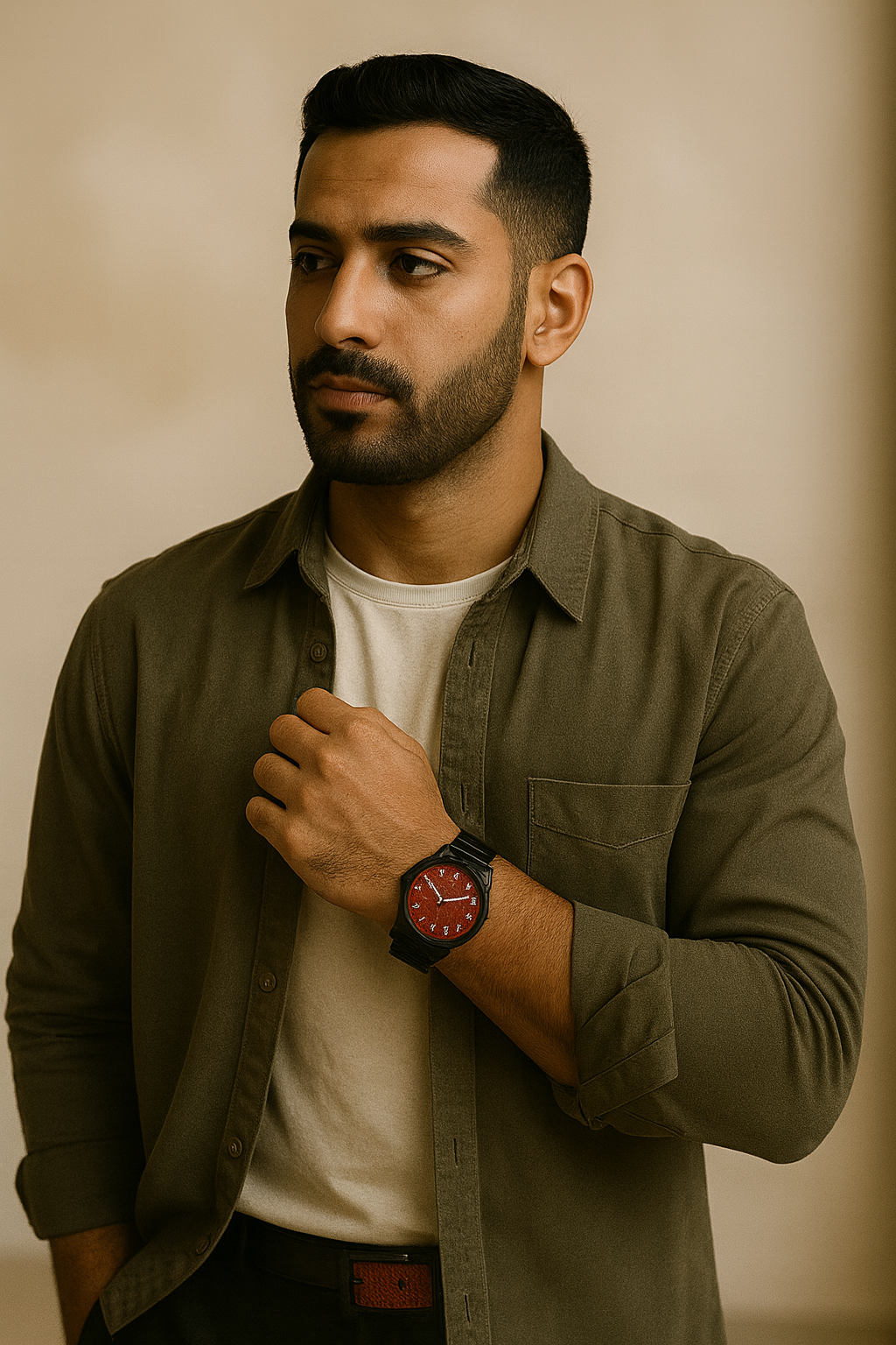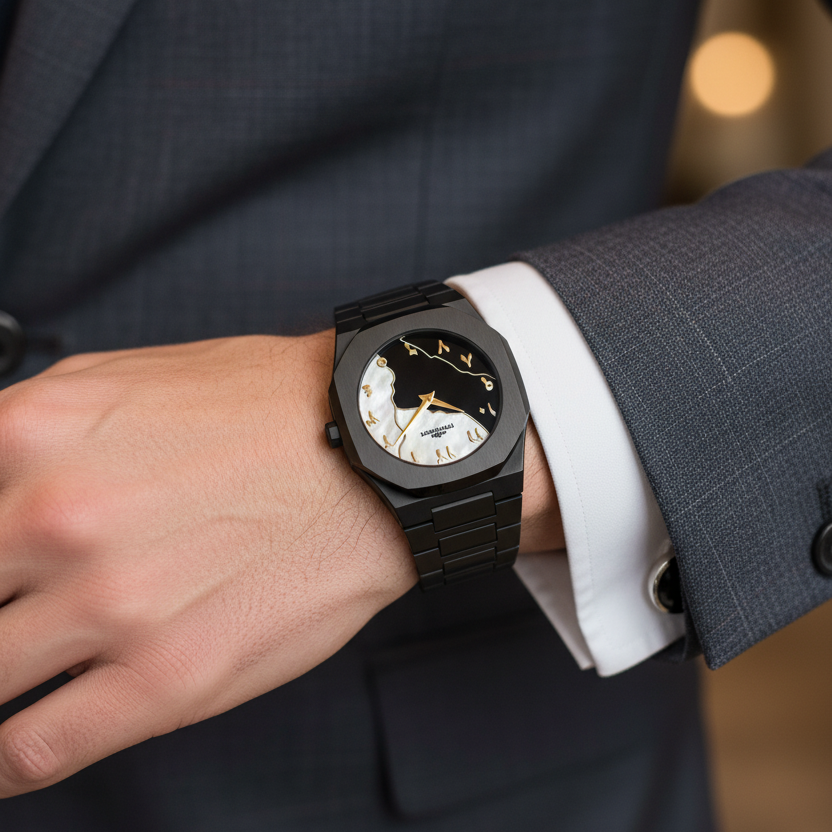 La montre s’intègre naturellement à toutes vos tenues. Vous vous surprenez à aimer votre style davantage, et à apprécier cette touche d’élégance arabe unique.